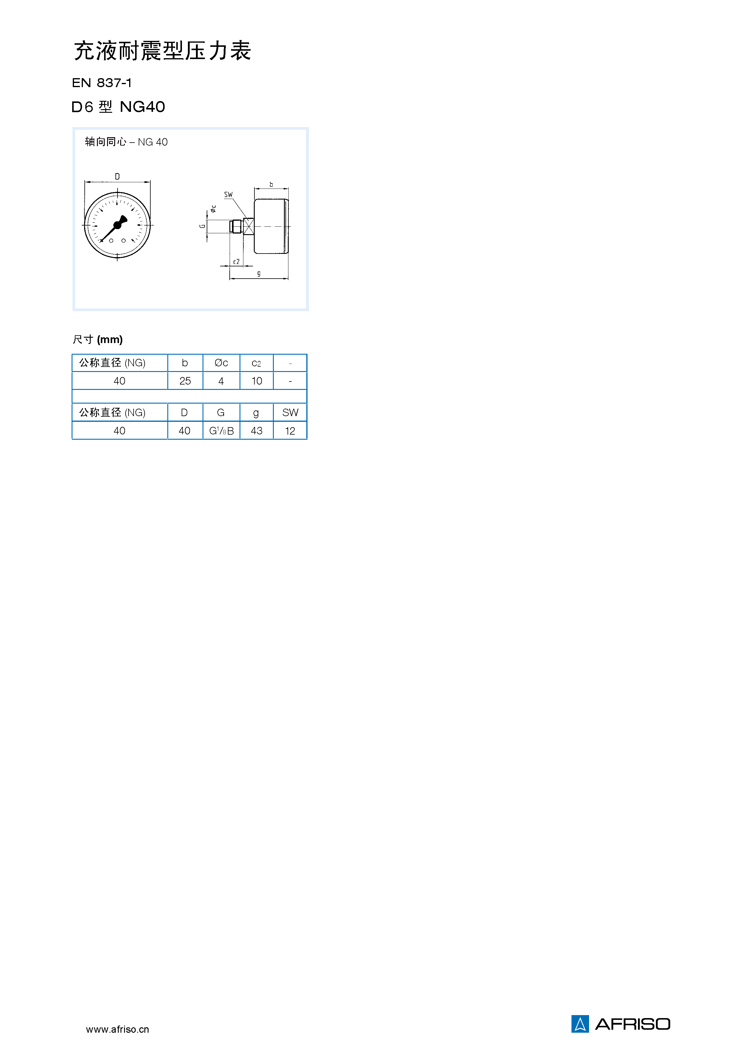 量程 (EN 837–1/5) |