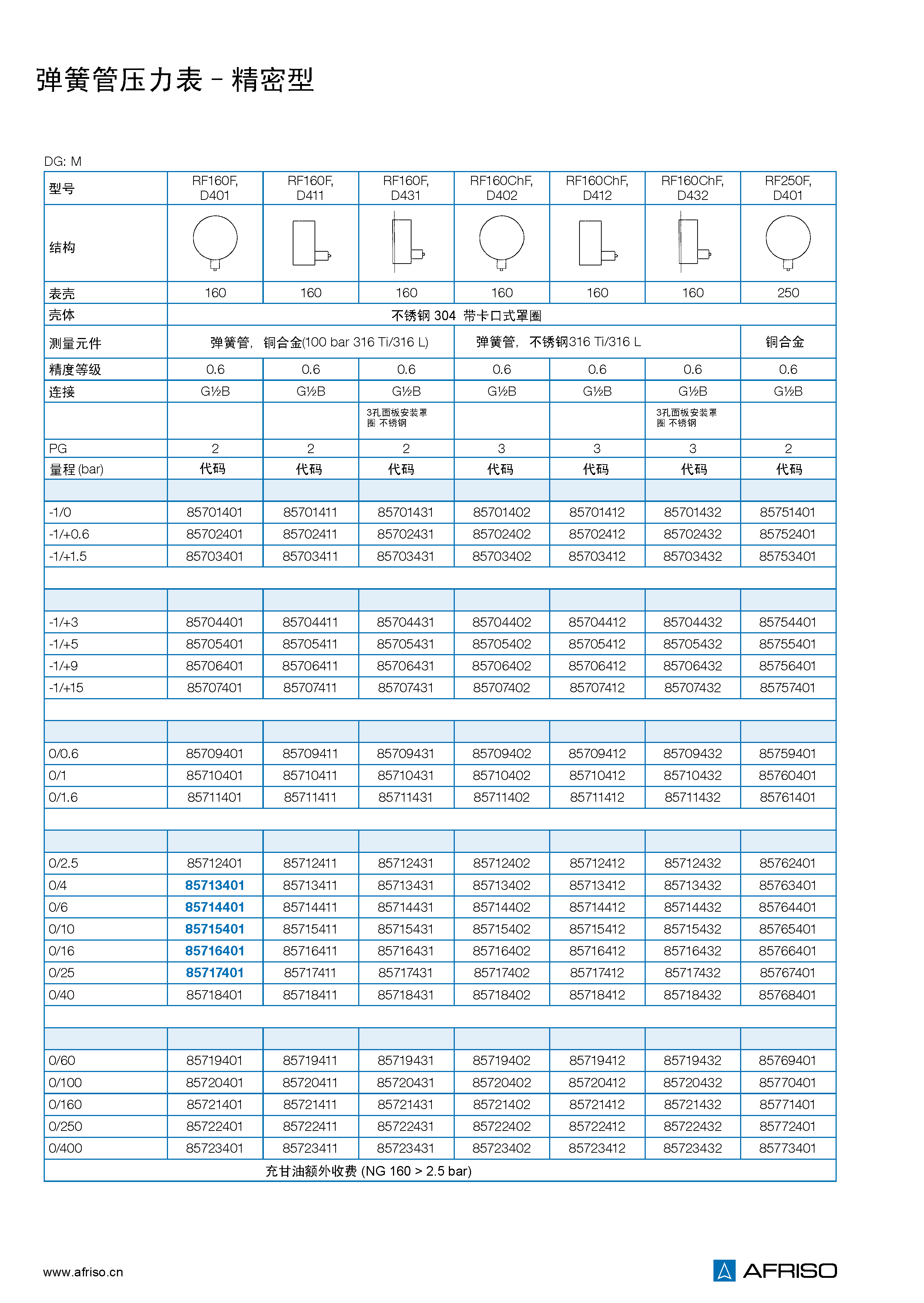 -0.1/0到-0.1/+1.5 MPa 0/0.06到0/40 MPa |